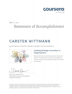 Urkunde Innovation – Leading Strategic Innovation in Organizations Veröffentlicht am Mai 13, 2013 von Carsten Wittmann